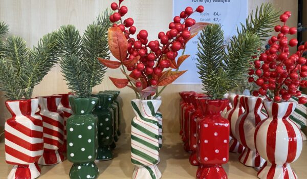Naast onze kerstbloemen hebben we nog veel meer leuks zoals kerststukken, kleine kerstboompjes, kerstkransen of stel je eigen cadeau samen voor jezelf of een ander. Zo kan je bv. een dienblad opmaken met kleine vaasjes en kerst accessoires en voorzien van o.a. led kaarsen. Je kan het zelf zo gek maken als je wilt, dus voor iedere portemonnee is er een oplossing. Daarnaast denken we graag mee om je huis in kerstsferen te brengen en kunnen we dus veelal zelf maken waaronder een leuke kerstkrans voor aan de deur. Ideaal met kunstgroen, want dat haal je volgend jaar weer gezellig tevoorschijn, duurzaam en gemakkelijk. Waar we ook heel blij mee zijn, is onze hele wand met bijzondere kerstornamenten, van prachtige glazen ballen tot kunststof beestjes voor de kinderen. Nog leuker, ze zijn super leuk geprijsd.