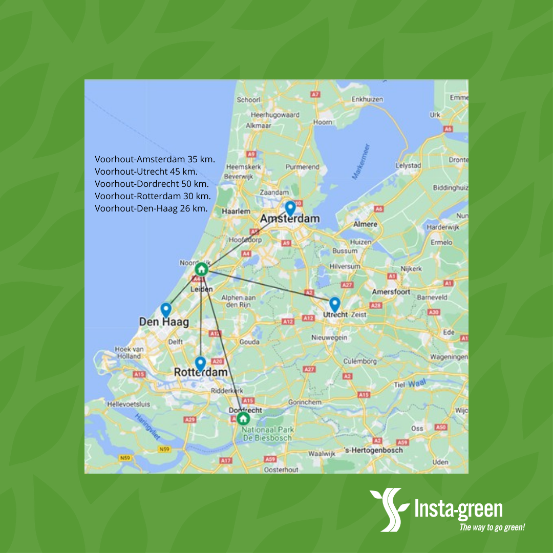 Inmiddels zijn wij in Voorhout 2 jaar open en merken wij dat door de opening van die nieuwe tunnel bij Leiden er steeds vaker mensen naar onze grote en ruime winkel in Voorhout rijden. In het kaartje hieronder is te zien dat de afstanden goed te doen zijn.