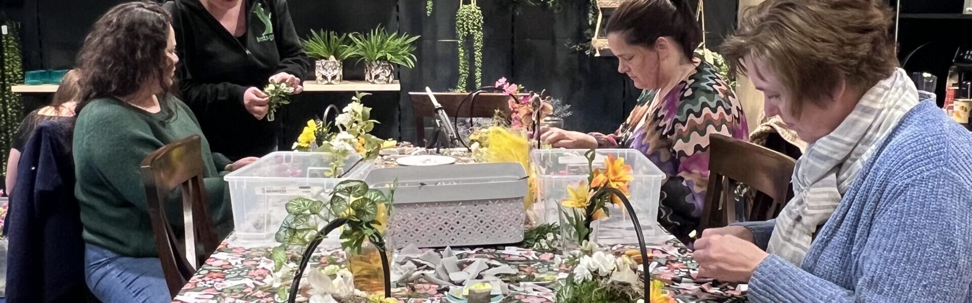 We gaan een mooi stuk maken om op te hangen óf om neer te zetten op tafel. Er zijn meerdere mogelijkheden, dus een ieder gaat naar huis met wat hij/ zij mooi vind. We maken hierbij gebruik van kunst groen, mos en kunstbloemen. Een mooi en duurzaam arrangement.